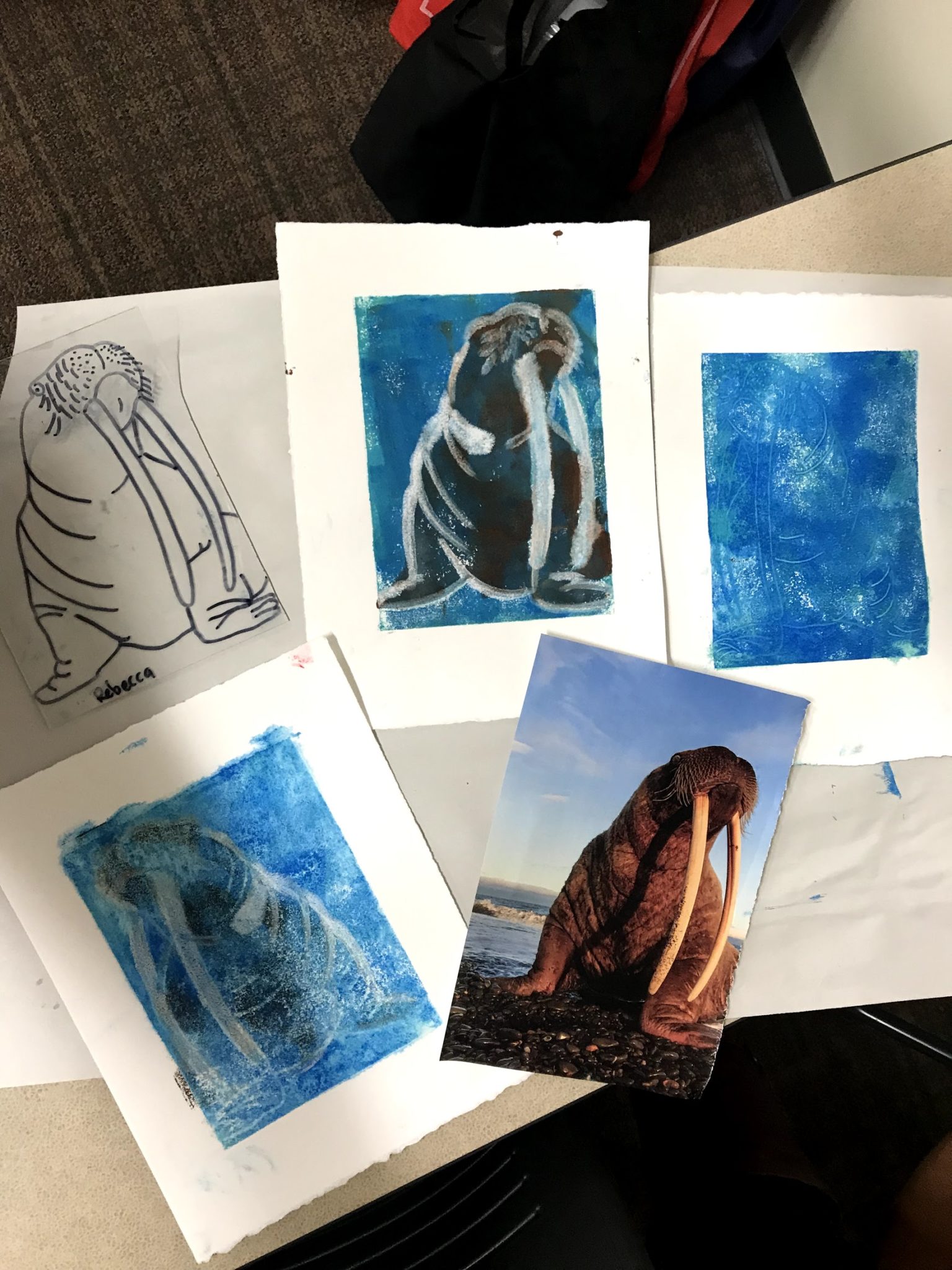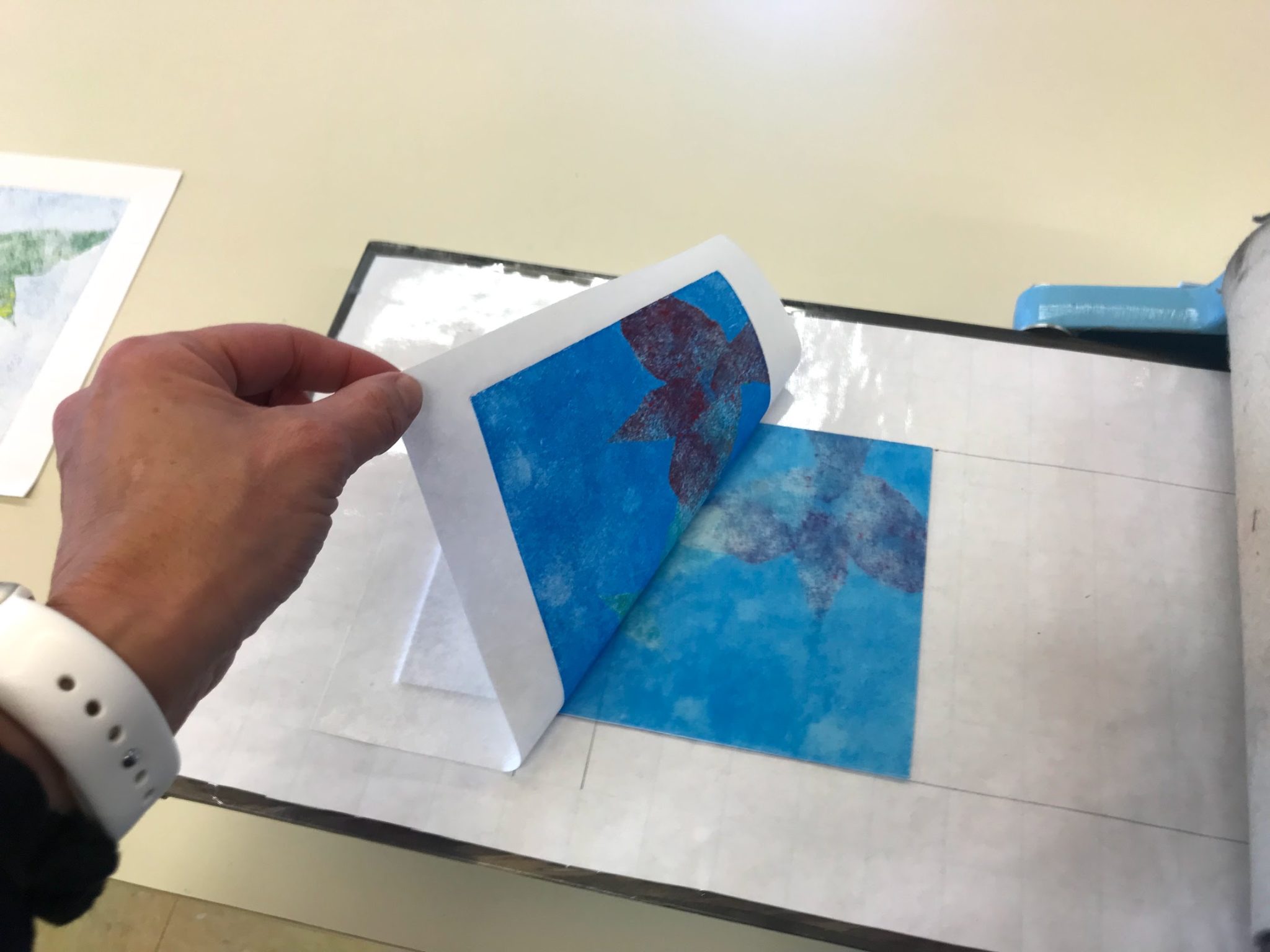 Art Specialist Jessica Garrick presented at this year’s Washington Art Education Association (WAEA) annual meeting in Tacoma. Her hands-on workshop Monotype Printing: Making Multiples, Not Just One-of-a-Kind hosted an above-capacity group of art educators from throughout Washington State. Many traditional printmaking techniques focus on creating a precise copy of an original image while monotype printing usually focuses on the creation of a single image which cannot be reproduced. Jessica’s workshop demonstrated strategies for bridging these two approaches to printmaking, helping artists to use printing as an evolutionary medium for producing a body of work with a common theme or concept.